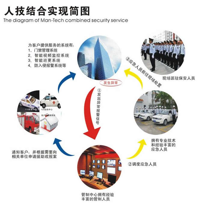 人技結(jié)合,就是在現(xiàn)有人力護(hù)衛(wèi)的基礎(chǔ)上,將技術(shù)防范手段有機(jī)整合,建立立體防控體系,實(shí)現(xiàn)24小時(shí)全方位的安全護(hù)衛(wèi)。